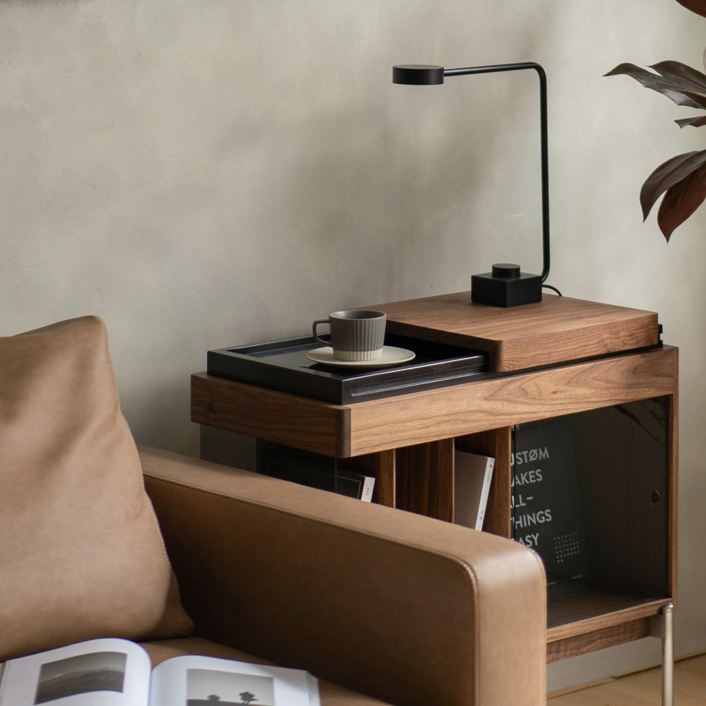 This black and light brown mixed vinyl record storage cabinet side storage table with a mysterious rustic wood grain design with solid metal legs. It retains the retro wood texture, but without losing the modern pop style. When the record is put in the record holder , it will show a little, we have made a bold size change to this brand new record player table, so that you can easily access your records. It also as a side table to offer storage space to the books you love.