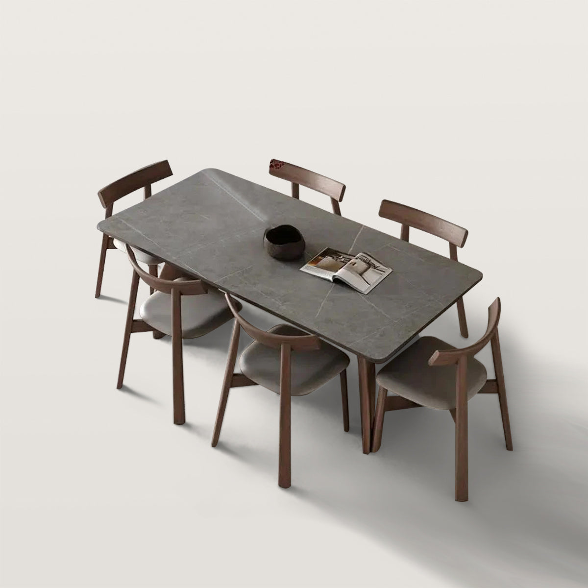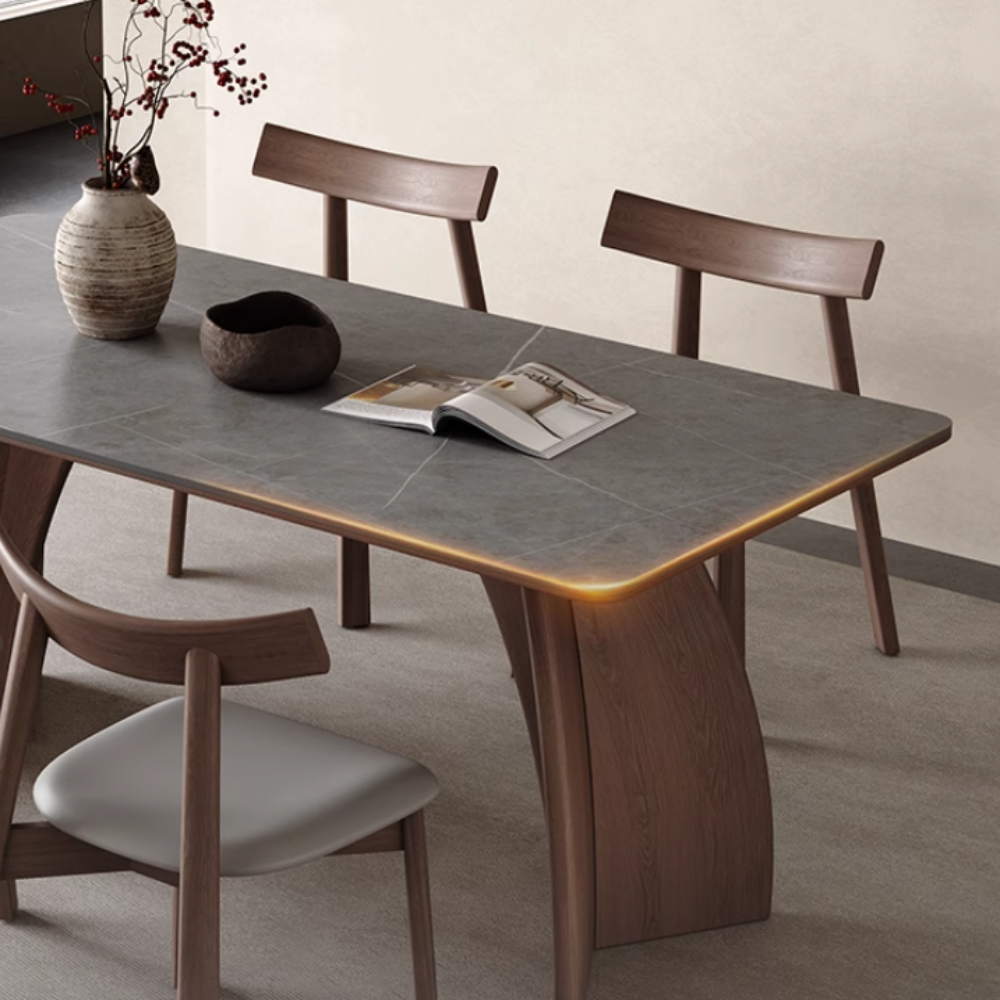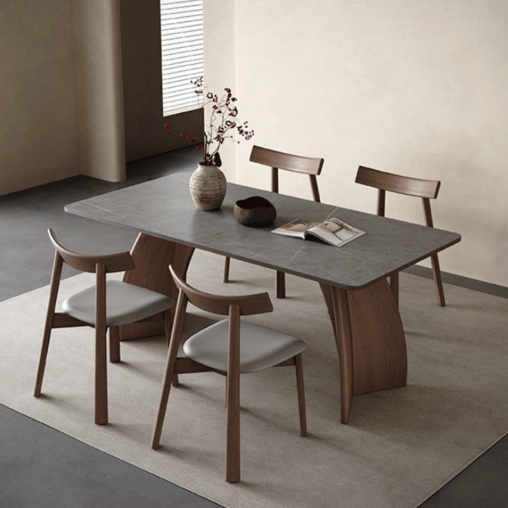 The modern kitchen table top is not only visually stunning but also highly practical. Crafted from a hard wearing gray sintered stone material, it can offers better exceptional resistance to scratches and heat than marble dining table top. This makes it an ideal choice for meal use, as well as for hosting party. The texture of the sintered stone top adds a touch of sophistication to the dinning table.