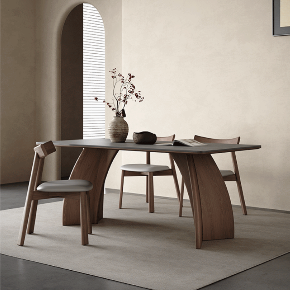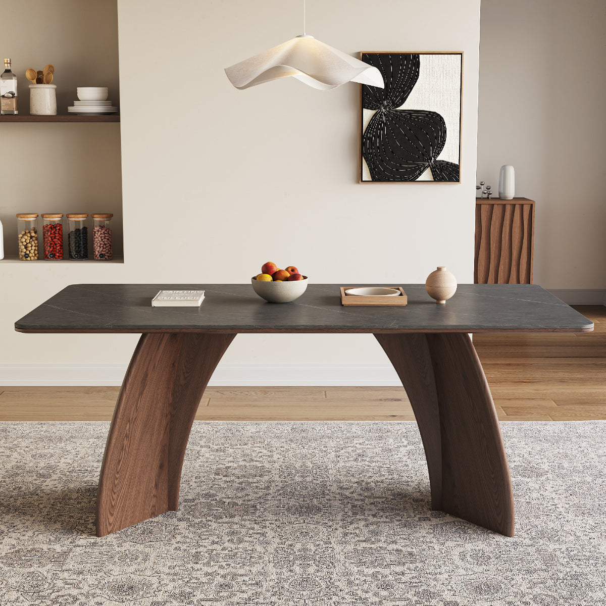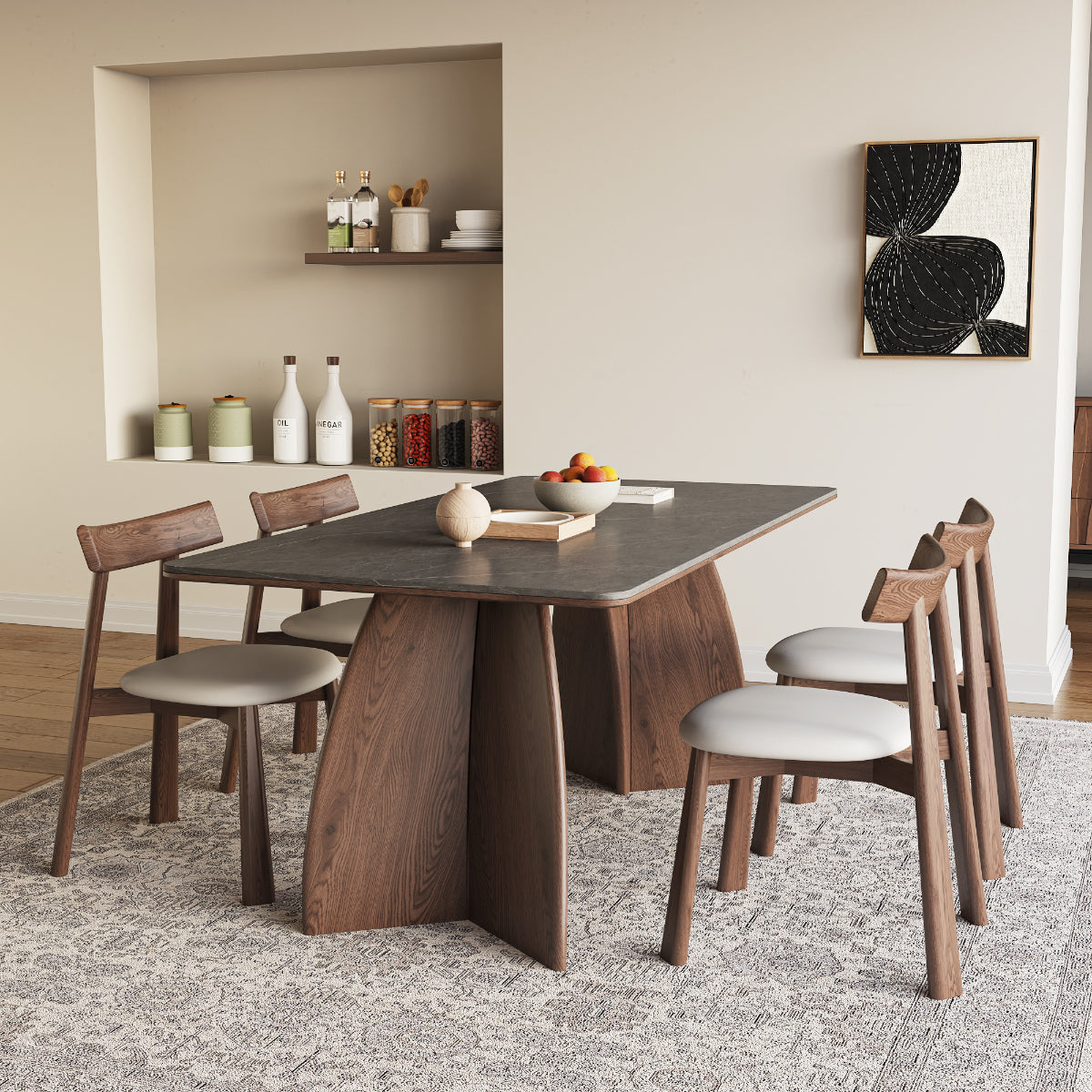 The modern kitchen table top is not only visually stunning but also highly practical. Crafted from a hard wearing gray sintered stone material, it can offers better exceptional resistance to scratches and heat than marble dining table top. This makes it an ideal choice for meal use, as well as for hosting party. The texture of the sintered stone top adds a touch of sophistication to the dinning table.
