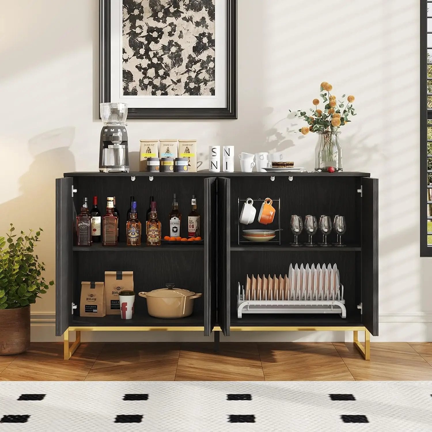 This stylish fluted buffet cabinet is spacious on its own, yet its interior adjustable shelves provide even more generous storage space. Hold anything from small kitchenware like glasses and plates to large spare kitchen appliances like microwaves or wine barrels. Keeping your living space organized and clutter-free.