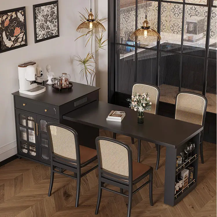 Elevate your dining experience with our Modern Expandable Dining Table Set, designed to bring style, functionality, and versatility to your home. This chic dining set features a sleek black finish and comes with four comfortable chairs, making it perfect for family meals, casual gatherings, or entertaining guests.