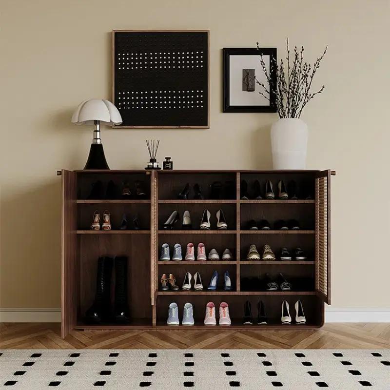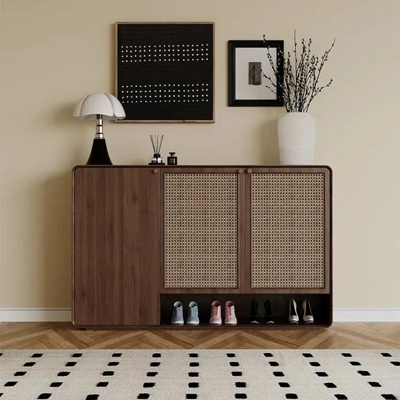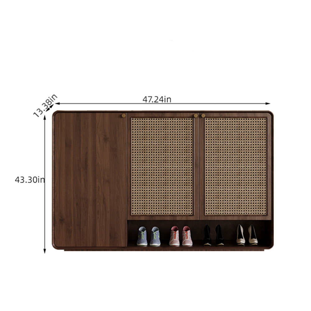 Classic rattan shoe cabinet combines classic rectangular rattan doors, emitting rustic charm and bohemian vibes, making it a versatile addition to any home decor. Its unique three-door design effectively organizes the clutter at the entryway, ensuring no more shoes scattered everywhere.