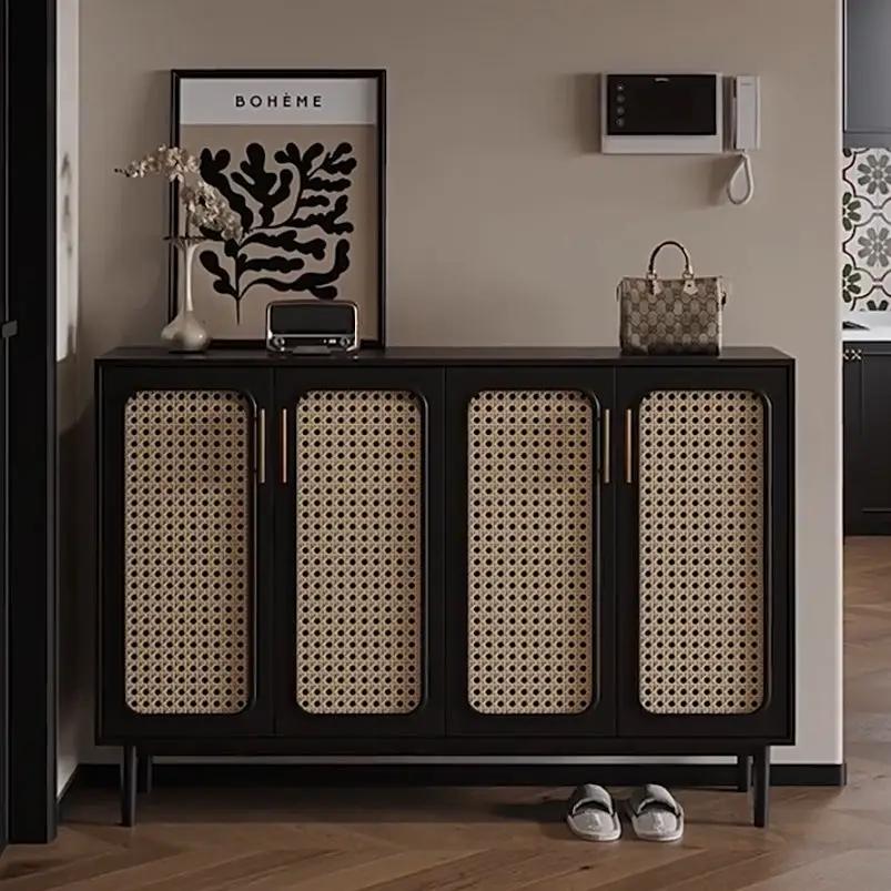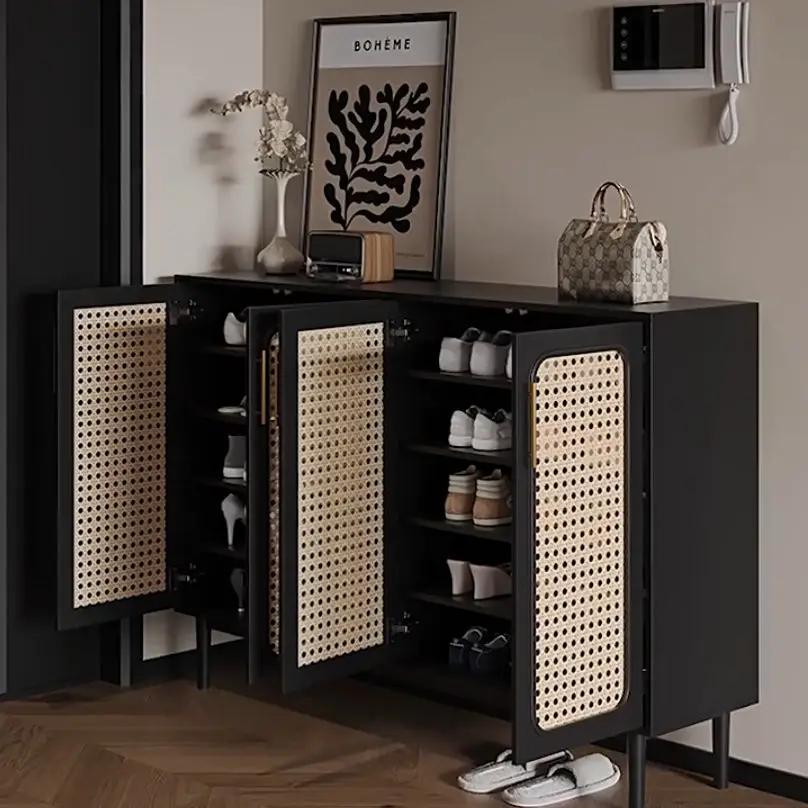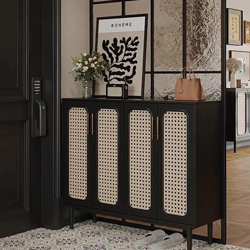 Looking for a stylish and practical solution to organize your shoe collection? Our modern black shoe cabinet with rattan doors offers the perfect blend of contemporary design and functionality.?