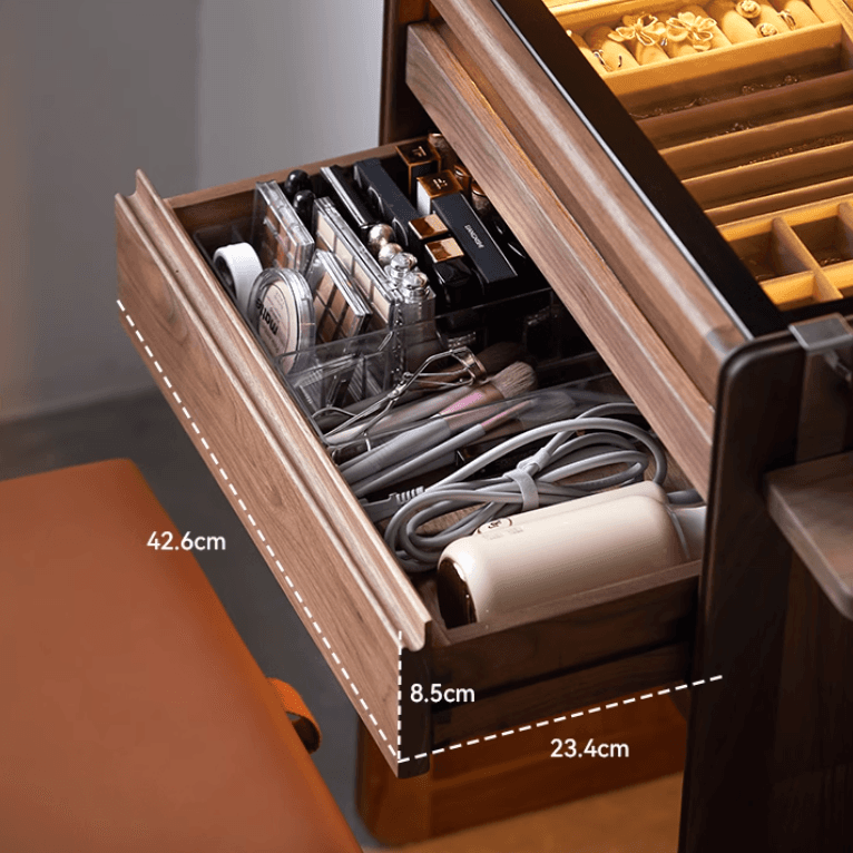 Hidden socket design, convenient for using beauty appliances such as hair dryers and curling irons, while meeting the charging needs of electronic devices such as mobile phones and tablets.