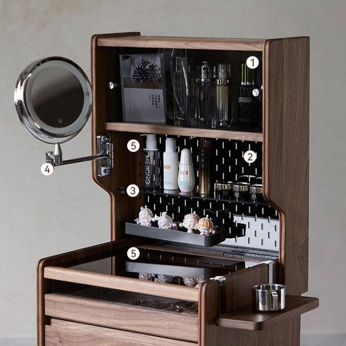 Detachable perforated panel, paired with hooks and storage baskets, can easily store small items such as earrings, necklaces, makeup brushes, etc., avoiding clutter.