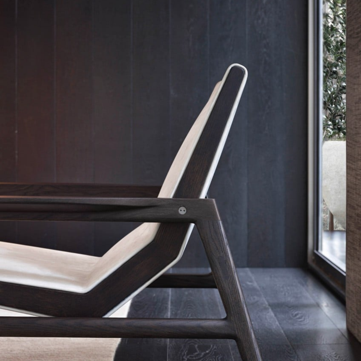 Crafted from solid wood and seat with non-removable cover in leather, this armchair is a modern, sophisticated, comfortable and versatile. The minimal design of the structure is combined with a focus on comfort, with structure upholstered in leather.