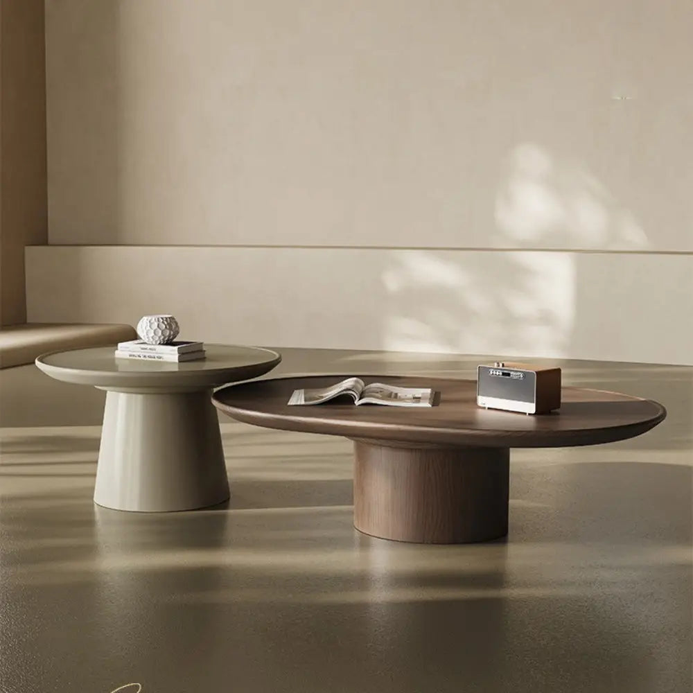 The larger table showcases a rich, dark wood finish that exudes warmth and sophistication. Its oval shape and smooth surface make it an ideal centerpiece for your living room, providing ample space for books, decor, or your morning coffee. The natural wood grain adds a touch of organic beauty, seamlessly integrating with both modern and traditional interiors.