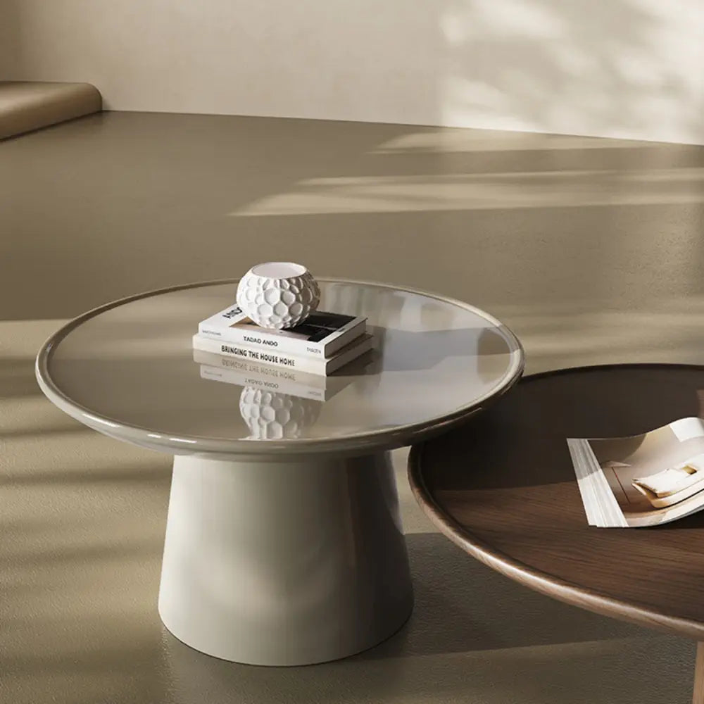 Both tables are supported by sturdy, cylindrical bases that ensure stability and durability. The minimalist design focuses on clean lines and simple forms, making these tables a versatile addition to any room decor. Whether you use them together or separately, this coffee table set offers endless possibilities for enhancing your living space.
