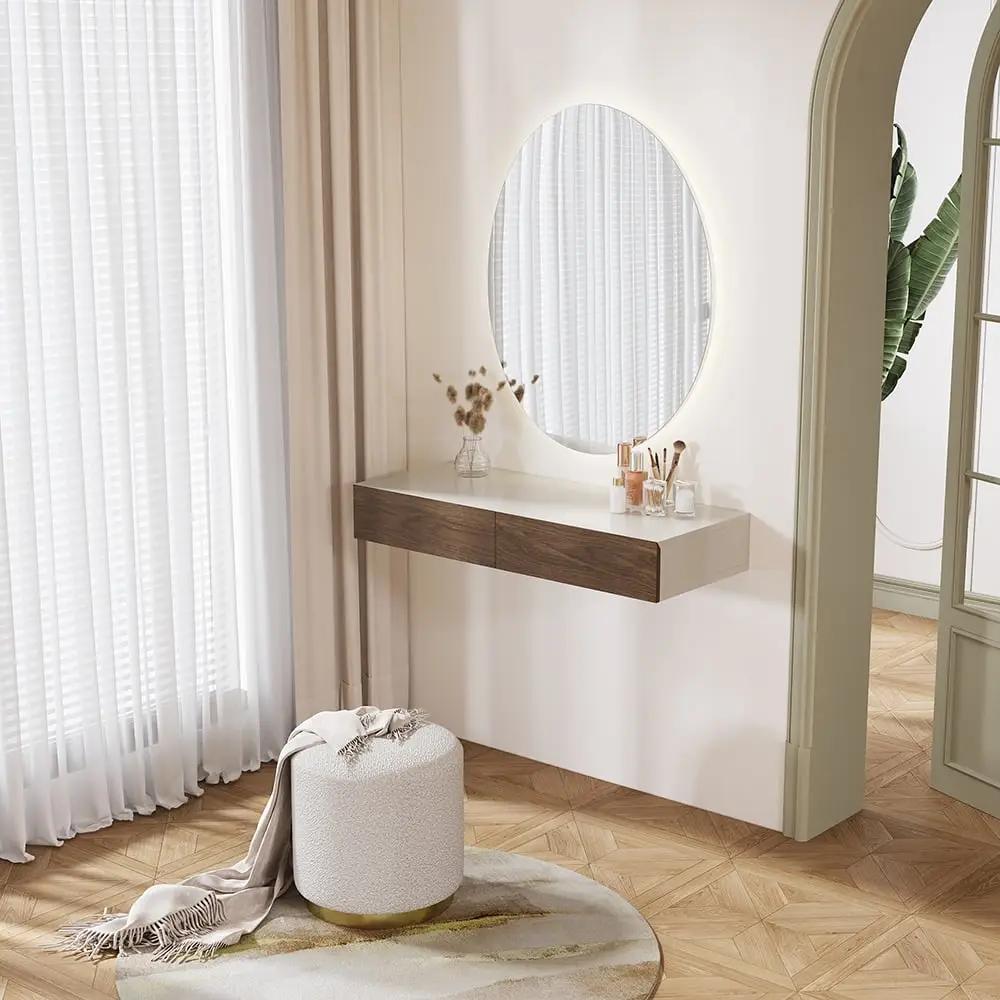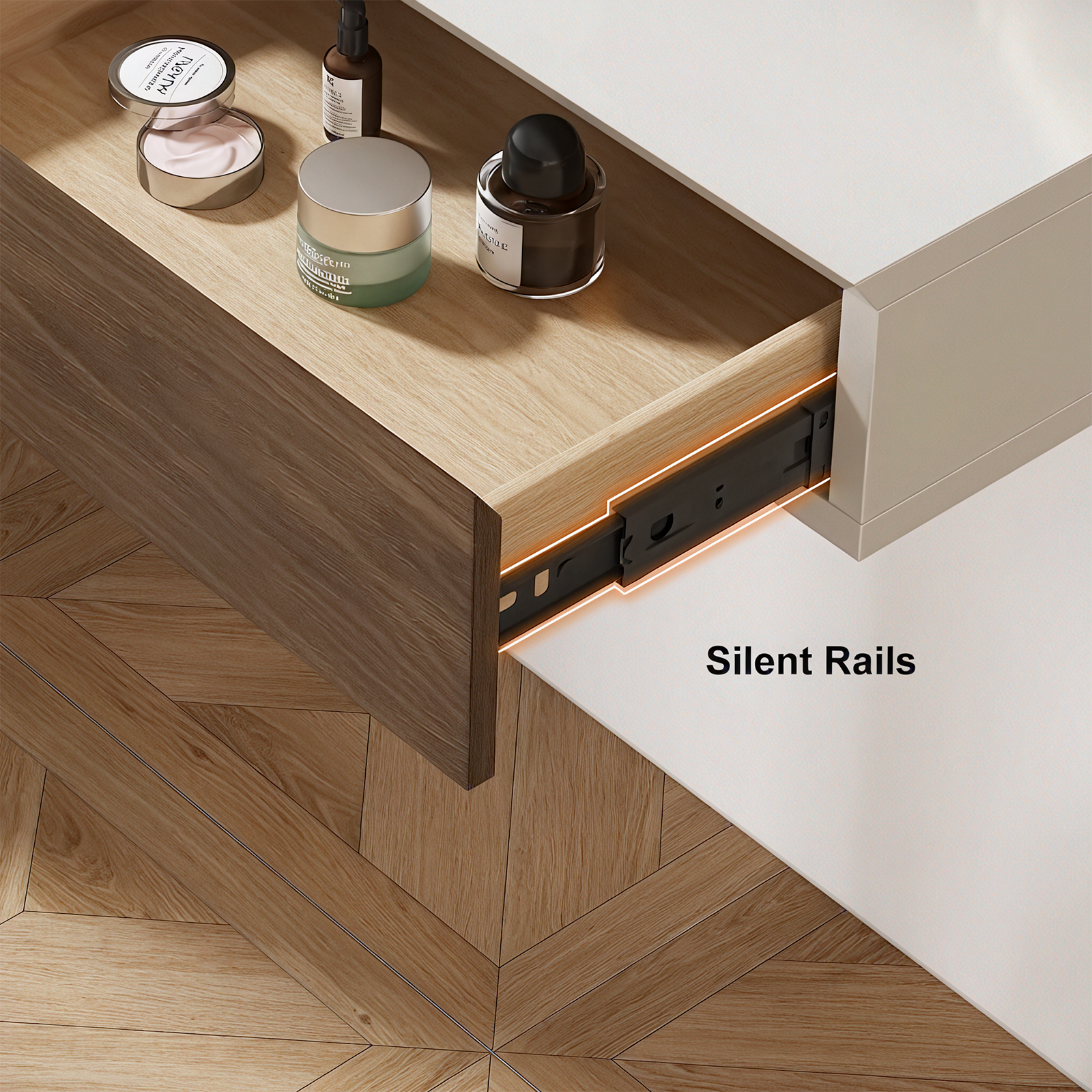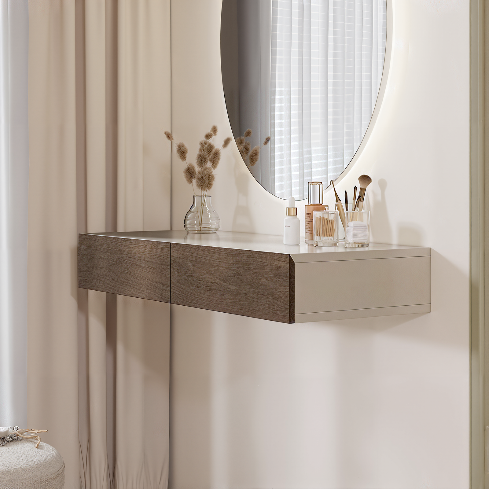 Effortlessly elevate your beauty routine with our Modern Floating Makeup Vanity. Its sleek and simple design adds a touch of elegance to any space, while the wall-mounted feature saves valuable floor space. With 2 drawers for storage, it's the perfect addition to any modern decor.