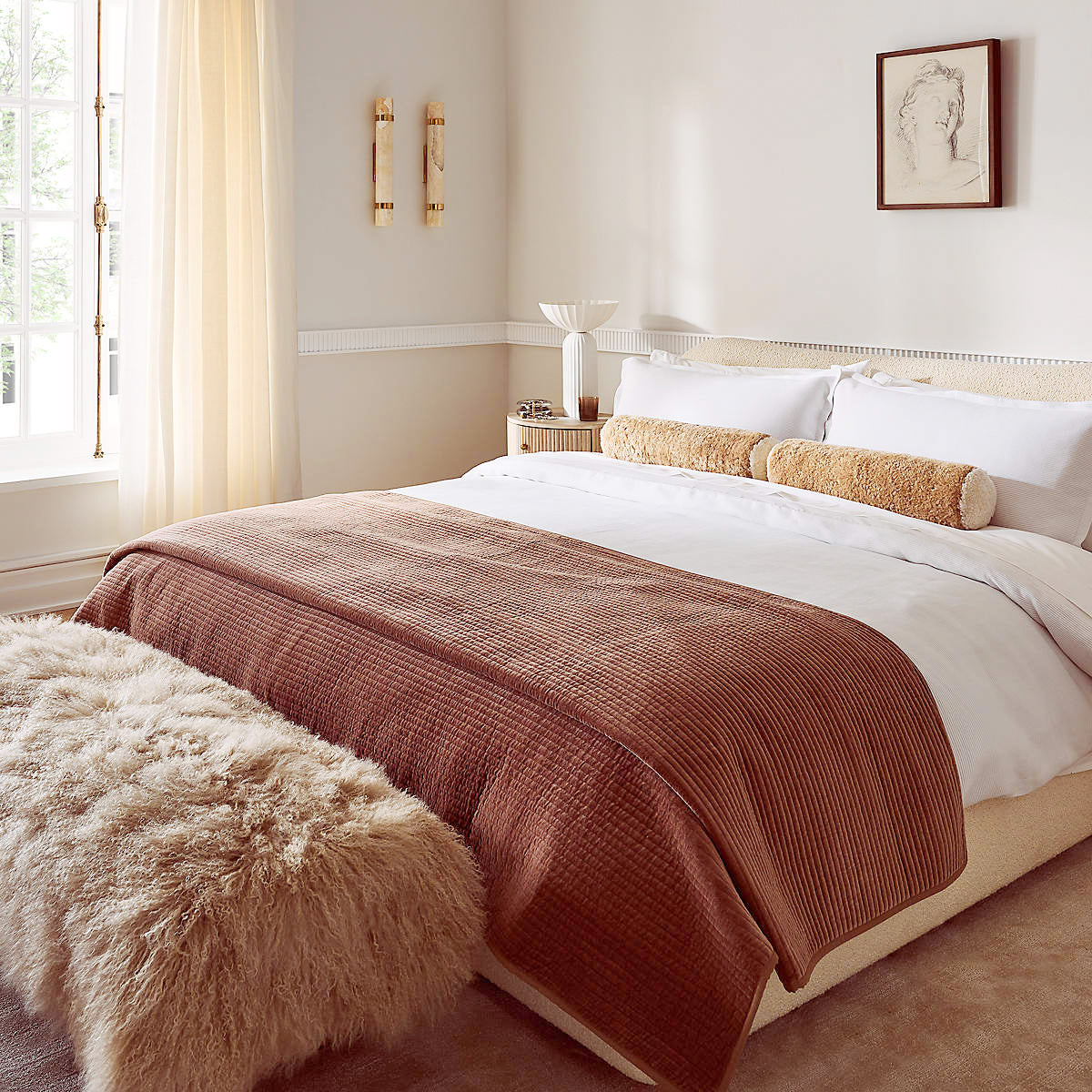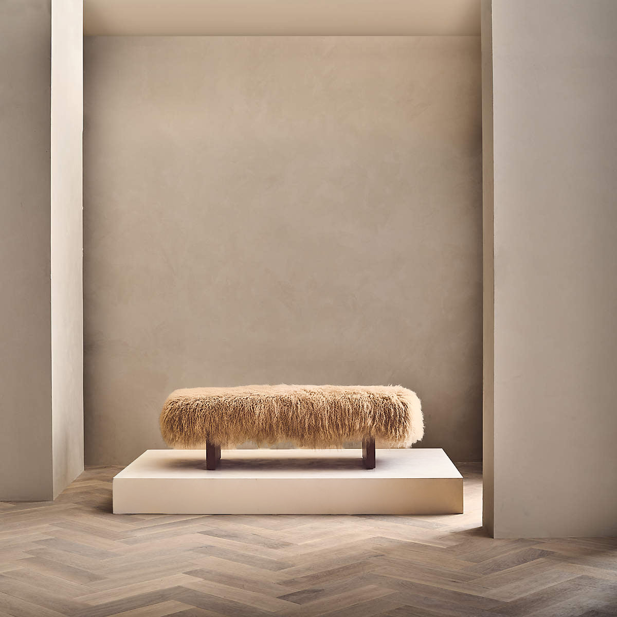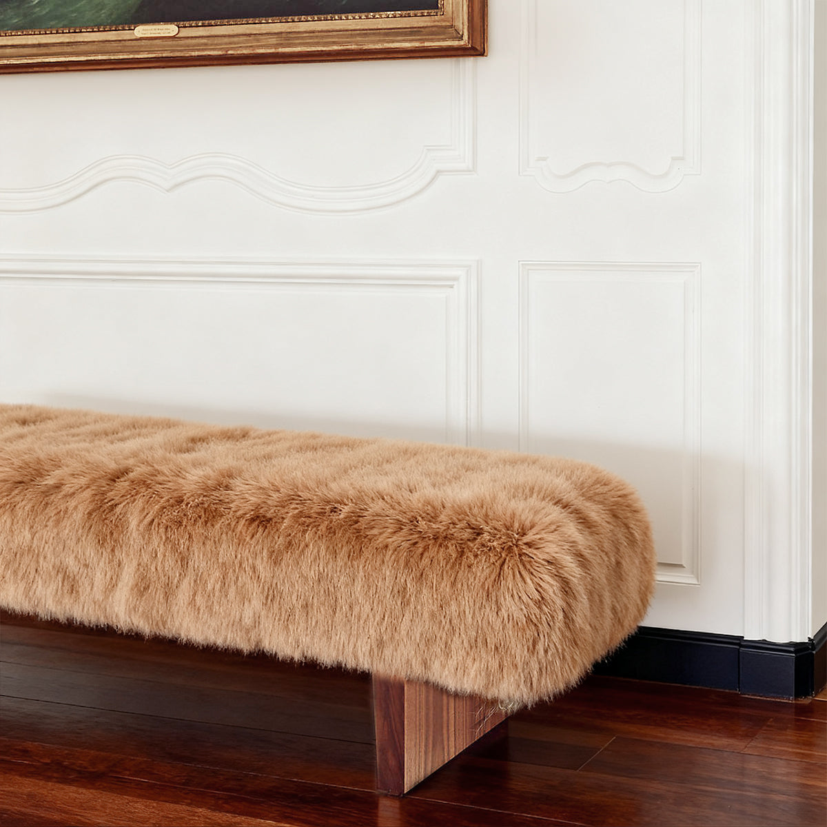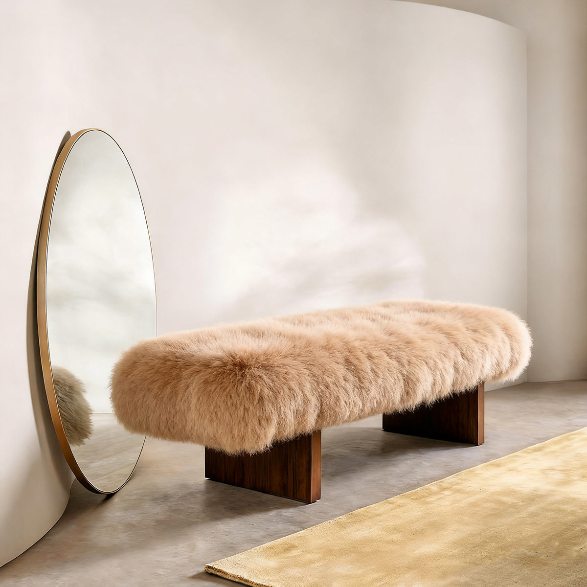 Sheepskin wrapping: Fully wrapped sheepskin fabric, with a soft and silky feel, plush and delicate comfort, providing a soft touch to the skin and bringing you a relaxing experience like being in a luxury hotel. The natural texture and luster of sheepskin give the entire bench a unique charm.