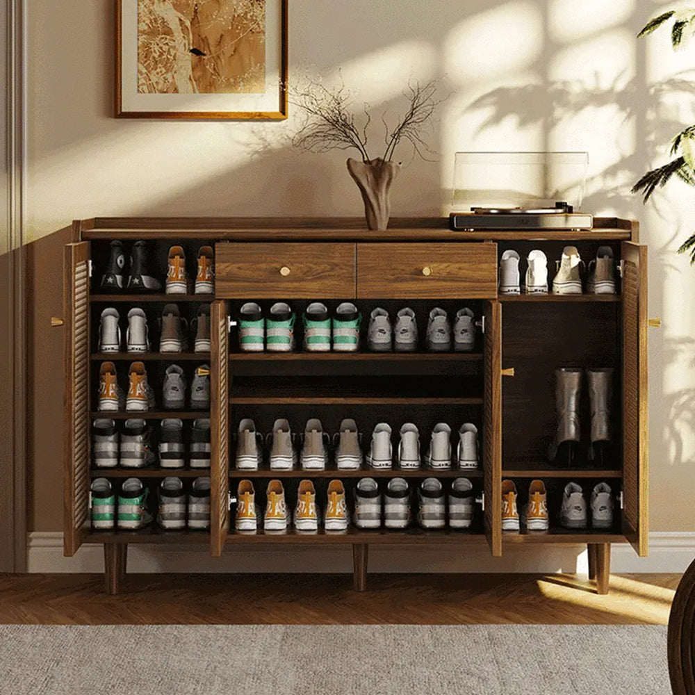 Ample Storage Space: Equipped with multiple shelves and drawers, this cabinet provides ample space to store numerous pairs of shoes and other small items. Each compartment is thoughtfully designed for easy organization and storage of different types of belongings.