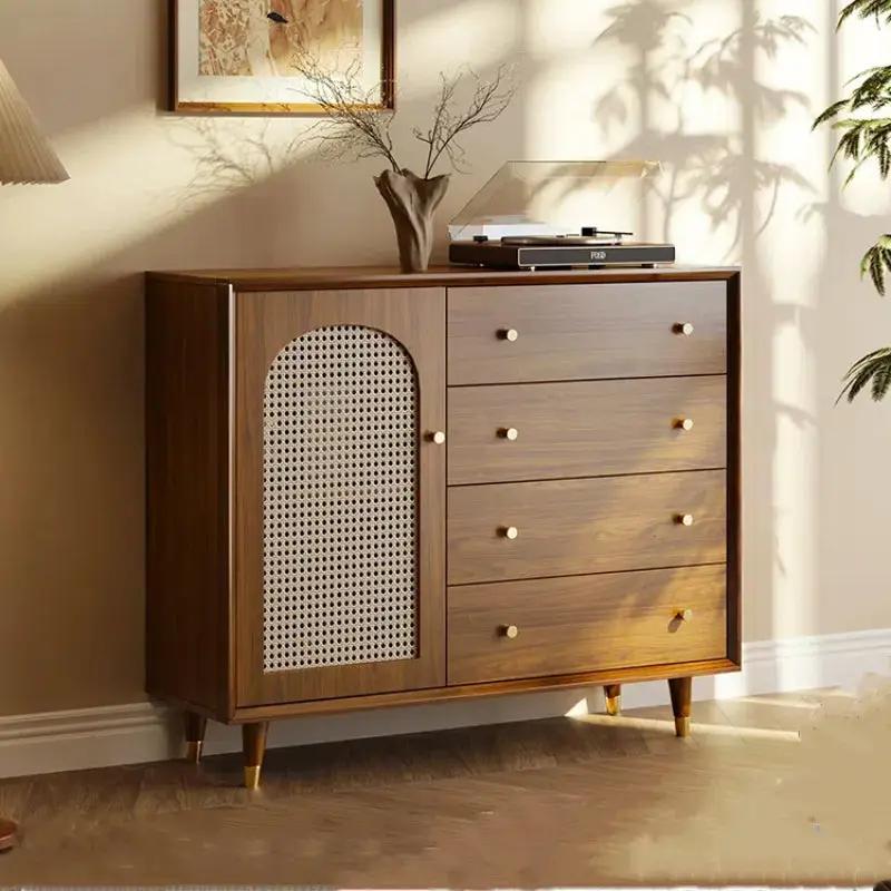 The sideboard is made of natural rattan and hand-woven technology. perfect combination of brown and gold of delivering perfect visual effect and add unique charm to your home. Not only can be used as furniture, but also as home decoration.
