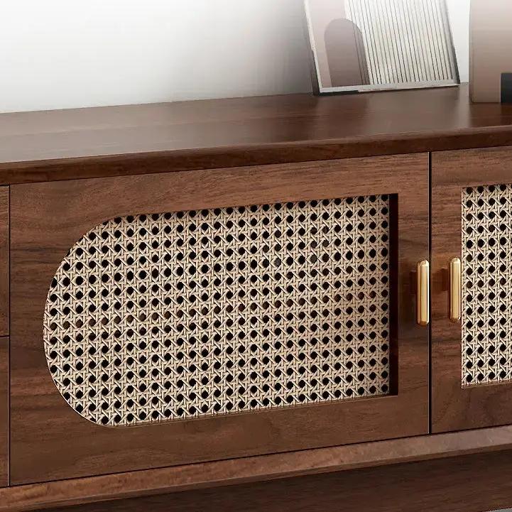 Modern Rattan Wood TV Stand with Storage
