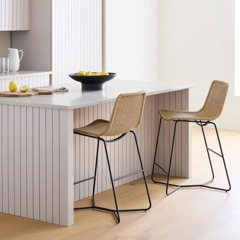 Experience superior comfort with our modern bar stool, designed with full PE woven rattan backrest for excellent breath ability. The handcrafted mesh fabric adds an elegant touch and showcases fine workmanship, while the woven rattan backrest provides comfort and breath ability. Each handwoven stool is a work of art, adding a touch of nature's grace to your bar or kitchen area.??