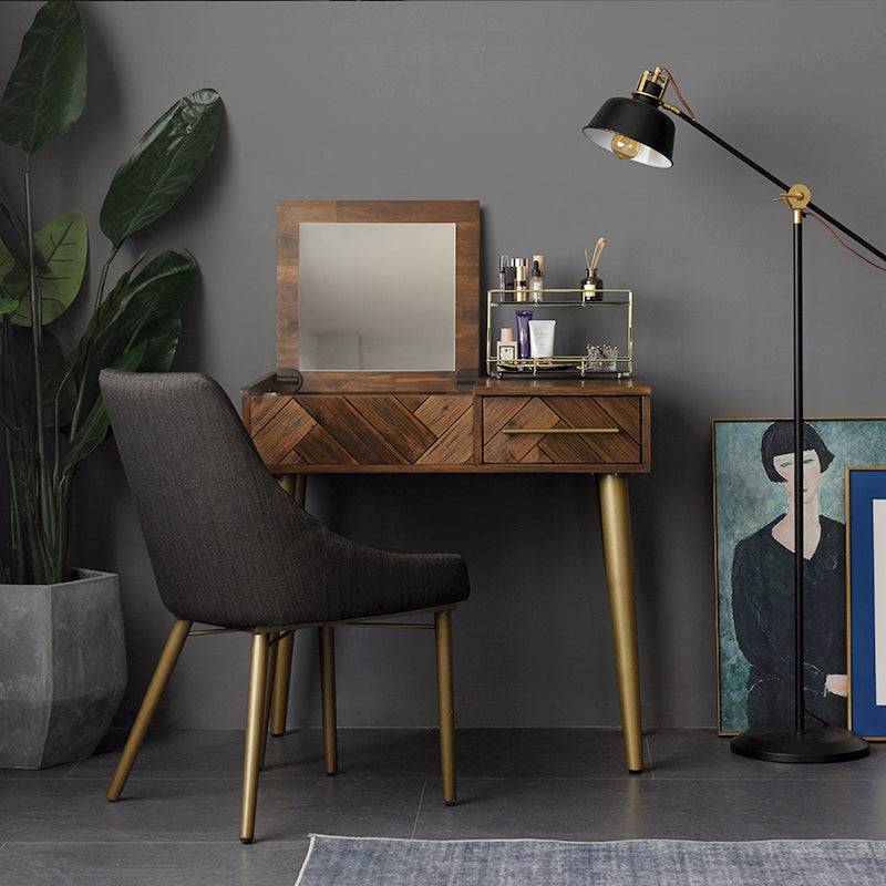 Flip cover design, cleverly hidden mirror, open to reveal dressing table, close to reveal desk or computer desk.