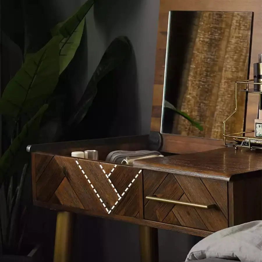 Flip cover storage compartment, classified for storing cosmetics, jewelry, and skincare products, easy to use and tidy. The drawer can be easily pushed and pulled to expand storage space.