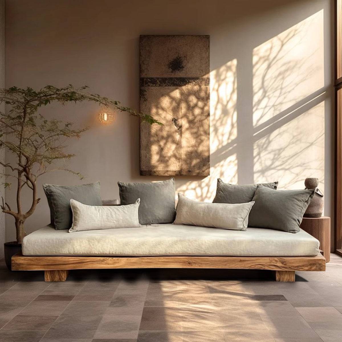 Sofa with Wooden Base and Homestay Style Fabric