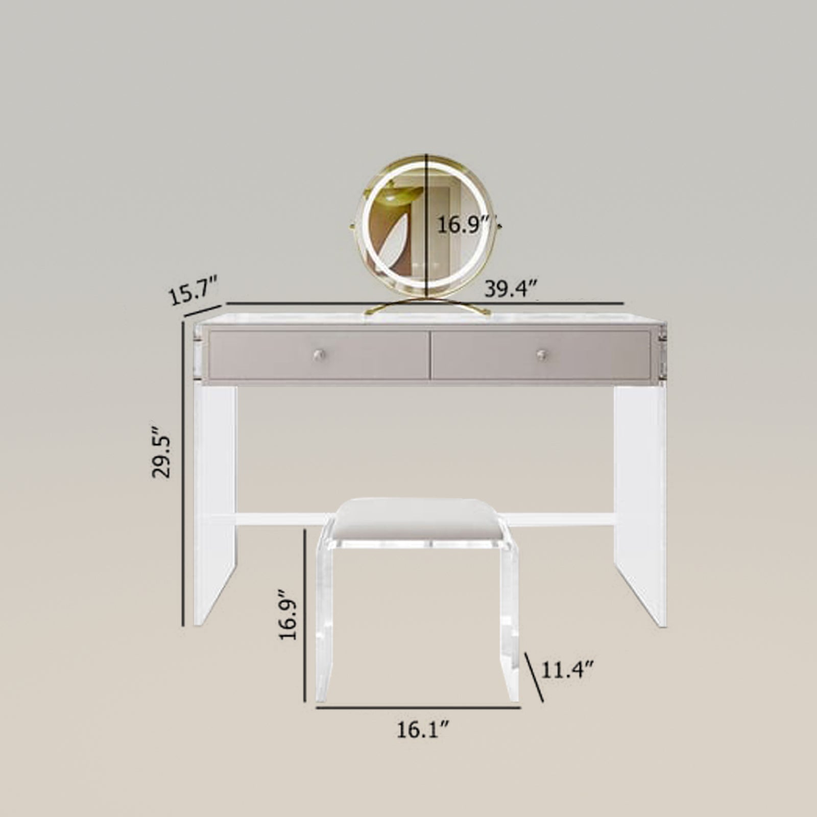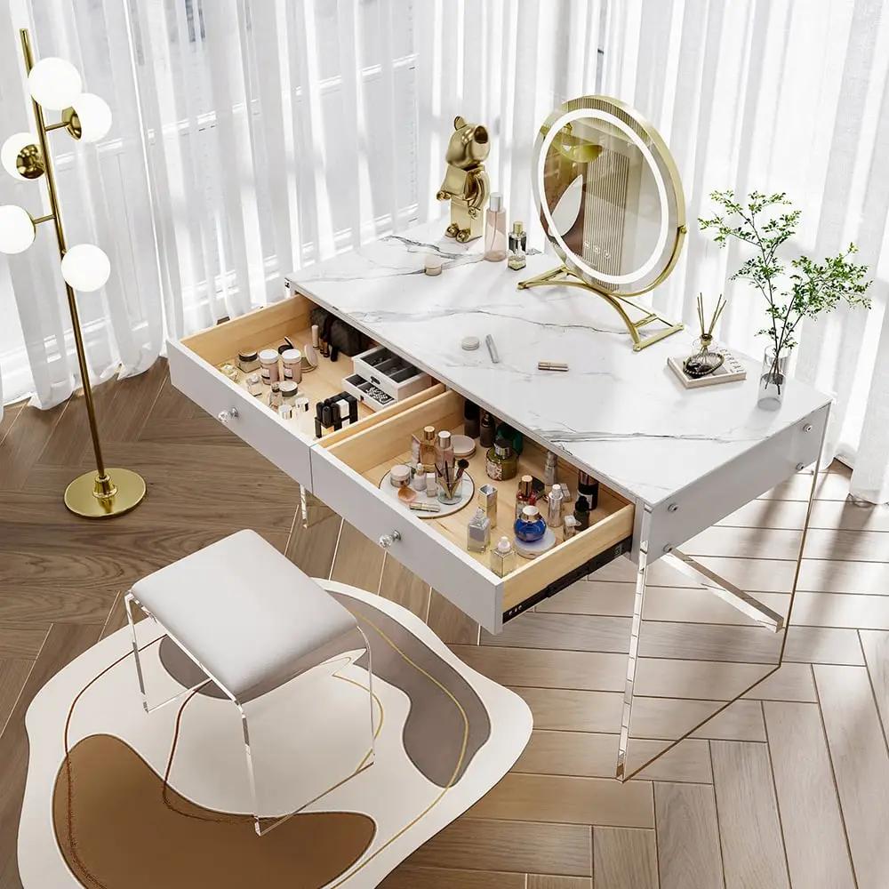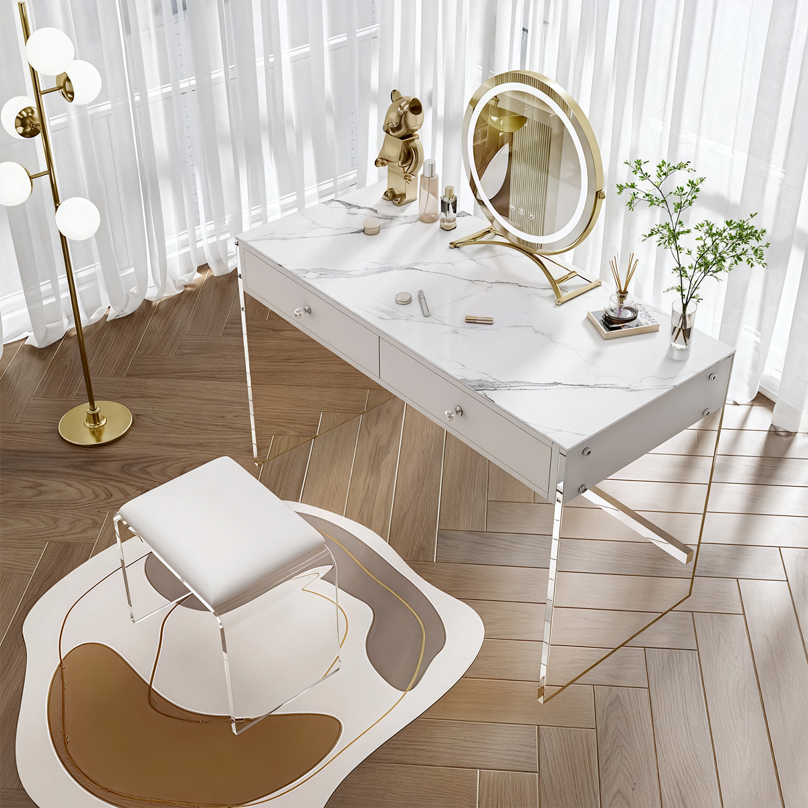 The vanity table is made of high-quality MDF board and durable acrylic material with friendly coating, which is scratch-resistant, waterproof and easy to clean; solid acrylic legs have unmatched strength and classic appearance, ensuring outstanding Excellent stability, carrying capacity and long service life.