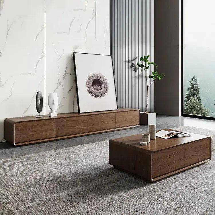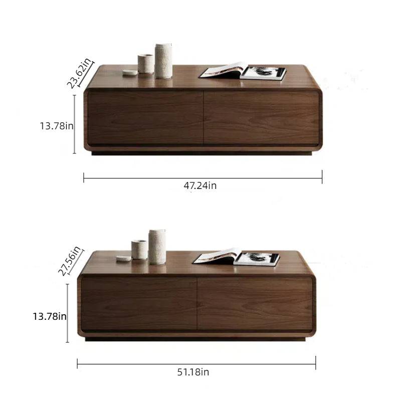 This walnut coffee table comes with four drawers in large storage space for organizing and storing your daily items, such as remote controls, magazines, blankets, etc. It improves space utilization effectively while keeping dust out. The smooth metal drawer slides make the drawers more effortless to open and close.