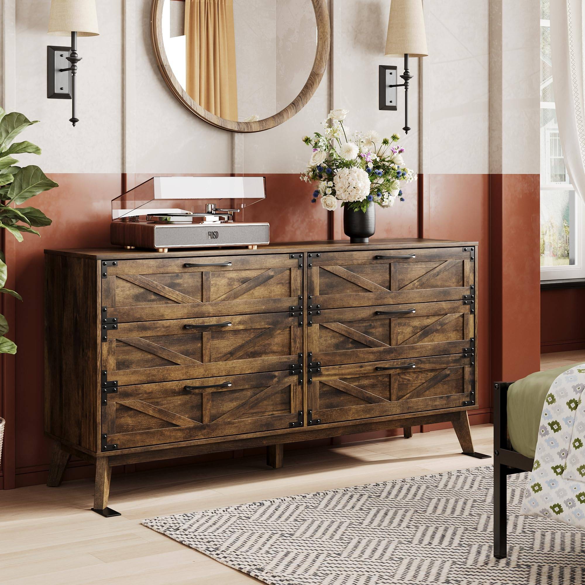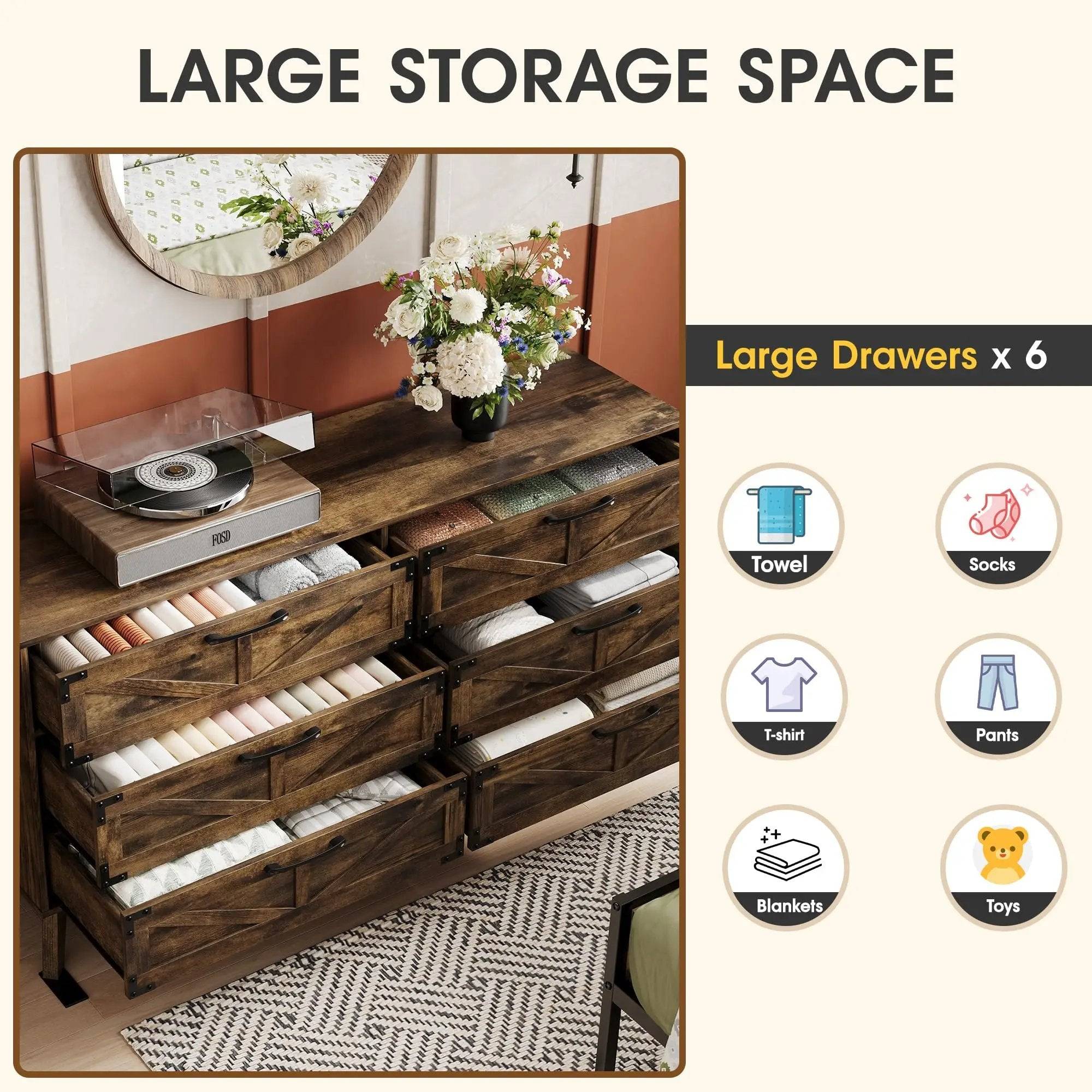 Classic chest of drawers features a great fusion of farmhouse beauty and the utility of storage space, features 6 drawers. the combination of 6 drawers greatly adds storage space to your home for socks, clothing, linens, cozy throw blankets, or pillows. Be it your bedroom closet dresser storage for clothes, bedding, cosmetics, jewelry, and more, or your living room items storage cabinet, this wooden six drawer dresser emerges as the nice choice.